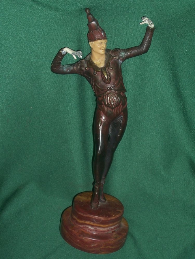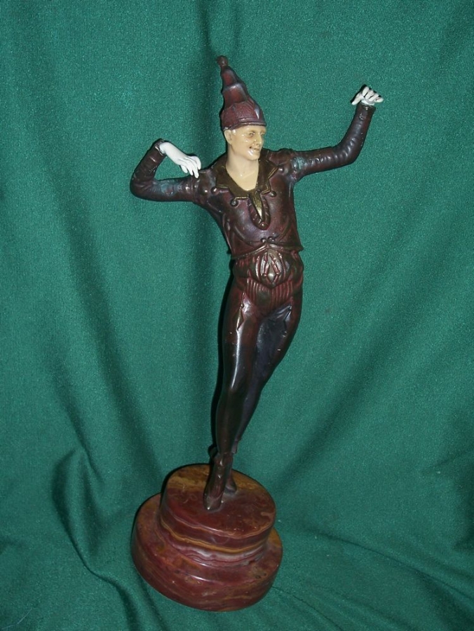 Art Deco Figur - aus Metal und Elfenbein (Sockel besteht aus Marmor).